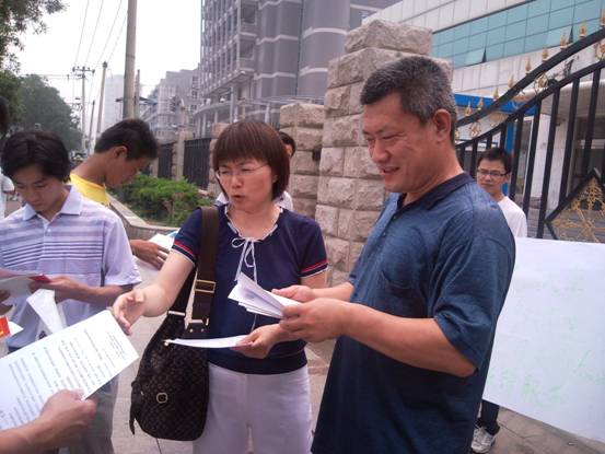 6月29日上午,顶着如火的骄阳,社会法研究所党支部的喜佳老师、李娟老师、郭忠臣老师及陆伟丰老师带领劳动法诊所的魏大伟、郭明、张静、阮箐娜、郭玮、杜江6名同学,来到了昌平区职业介绍中心进行劳动法义务普法宣传活动。活动刚开始,便受到了周边民众的热烈欢迎,争相索取宣传材料及劳动法法条,很快宣传单和劳动法法条便分发一空。随后,各位老师带领同学们现场解答了求职者的一些问题。咨询者纷纷表示,此次活动帮助他们解答了求职中遇到的困惑,以后求职时会更注意维护自己的合法权益,以后遇到困惑的问题会继续向劳动法诊所寻求帮助。最后,参加此次活动的老师和同学们在陆伟丰老师自制的宣传单前合影留念,此次活动取得圆满成功。