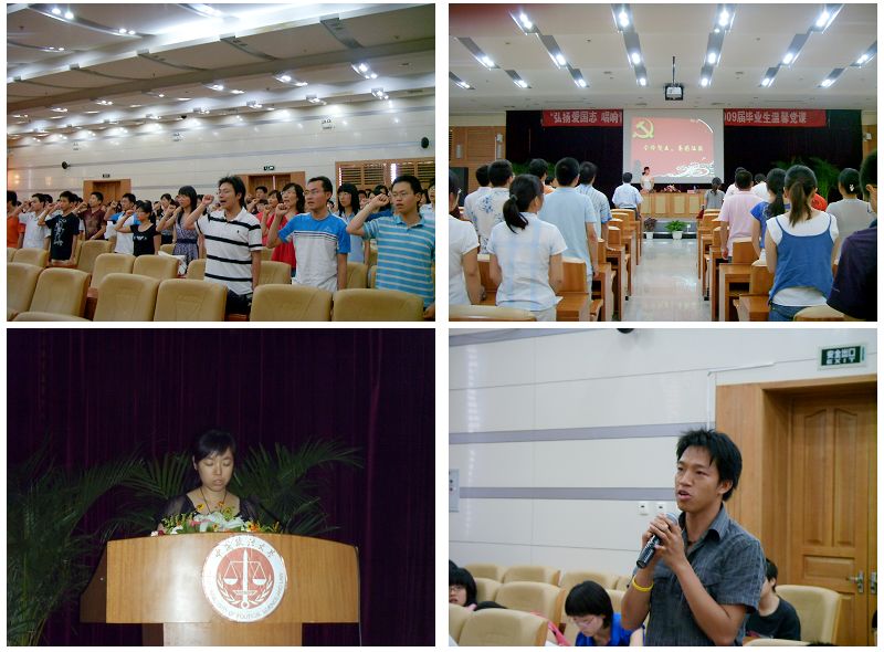 “弘扬爱国志唱响爱国颂”毕业生温馨党课是诸侯快讯ok11222009届毕业生文明离校系列活动中一个重要的部分。最后一次党课少了些许过往的严肃,更多是一份温暖,一份感动,愿所有大四的党员同志们带着对人生对未来的思考,带着法大母校的关爱和祝福,走好人生的每一步。