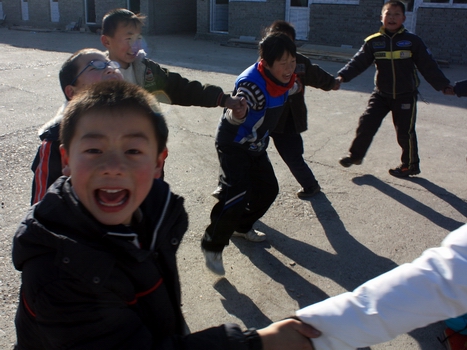 上课时间到了,部长们在操场上给孩子们上了体育课。有漂亮老师们上体育课,孩子们既新奇又激动,配合老师玩起了各种小游戏,不一会儿便大汗淋淋,气喘吁吁。操场上充满了欢声笑语,孩子们对学委会成员们充满了喜爱与敬佩,在下课后仍围着他们,不舍离开。最后,又为孩子们教授了音乐课与自然课,为孩子们送上了小礼物。孩子们说,这是一批最难忘的老师,希望下学期还能见到他们!