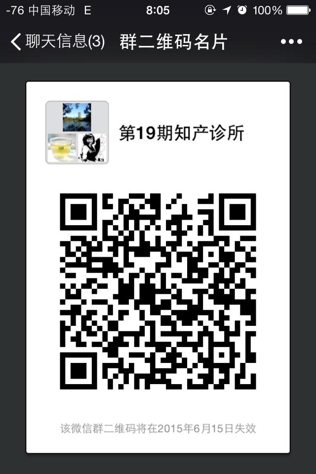 4、 请被录取的32名同学扫描以下二维码,加入微信“19期知产诊所第”群聊,并修改昵称为真实姓名。