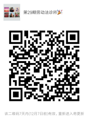 6.请被录取的同学扫描上方提供的第29期劳动法诊所微信群二维码加入该群,然后与班长联系,以便记录各同学联系电话、电邮地址,制作通讯录,安排各位同学的值班时间和分组。